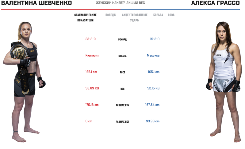 На бумаге Шевченко должнва легко побеждать Грассо: она находится на пике формы, гораздо опытнее и искушеннее в боях, она крупнее и универсальнее. И, похоже, только чудо поможет мексикануе одержать победу в этом поединке.